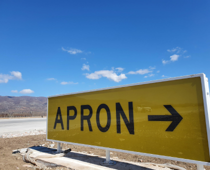 بعد استلام المشروع، تم إكمال أعمال المدرج الخرساني الخاص، ومسار الدوران، ومنطقة ريسا، والممر الموازي، والساحة، والجدار الأمني والأبراج، ونظام الصرف الصحي، ومباني VOR والمنظمات وتسليمها بالكامل لأصحاب المصلحة